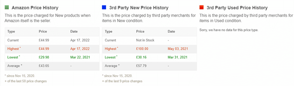 Cons: While CamelCamelCamel UK focuses primarily on Amazon UK prices, other tools like PriceSpy and Keepa may offer a wider selection of products and retailers to track.